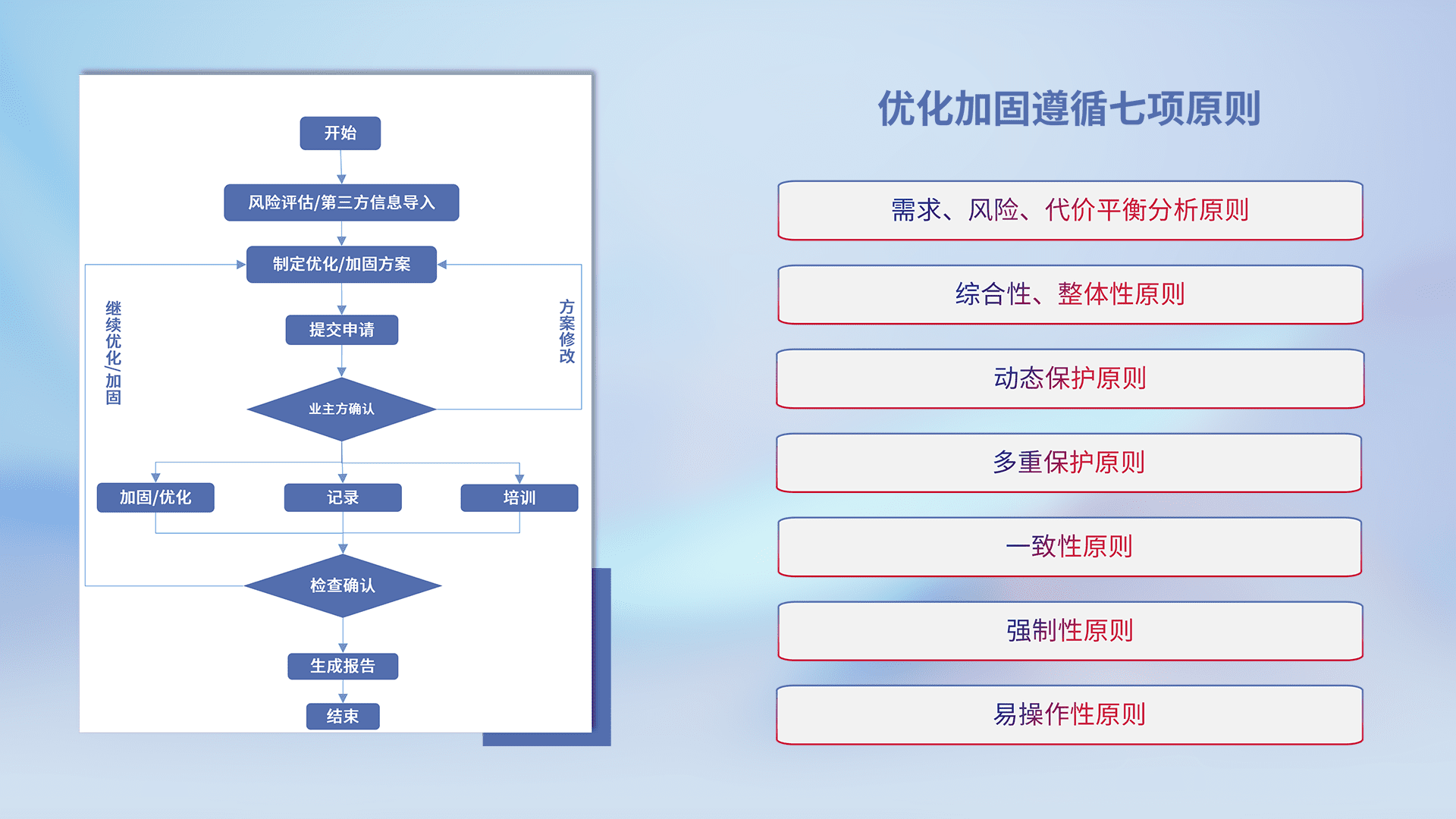 最大程度利用现有资产,,,对评估发现的问题进行封堵与整改,,,防止漏洞被利用,,,提升整体网络安全性,,,为客户带来高标准的优化加固服务。。