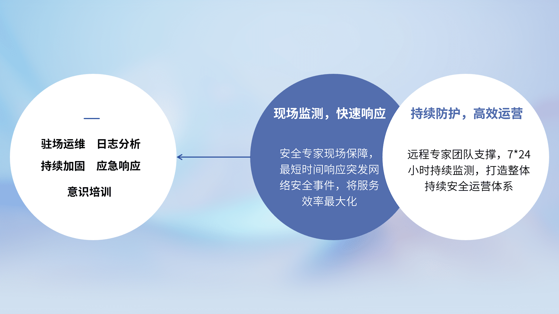 针对客户行业特性,,,,提供专属的一站式安全管理服务,,,,帮助客户全面感知网络空间威胁,,,,通过安全专家的线上、、、线下防护支持,,实现风险闭环,,将安全保障常态化,,,,为客户打造常态化安全运维运营服务。。。。